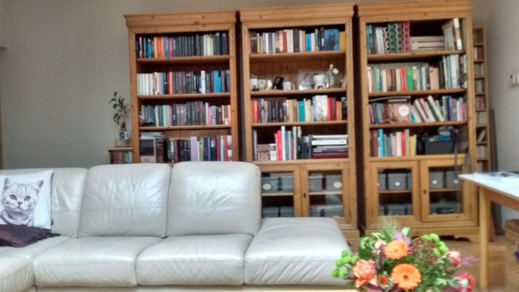 In de huidige luisterruimte zou ik de speakers van plaats veranderen . Ik zou ze aan het andere eind van de verticale balk zetten en de boekenkast anex luisterplek verplaatsen naar de plaats waar nu de speakers staan . Om één en ander voor de bakker te krijgen , zou ik mijn vrouw een mooi nieuw kleedje beloven .